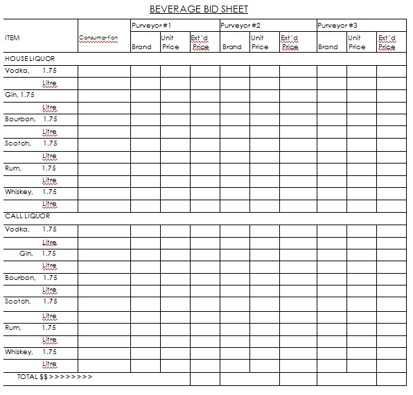 12. A “Beverage Bid Sheet” form is used to facilitate the comparison and analysis process.