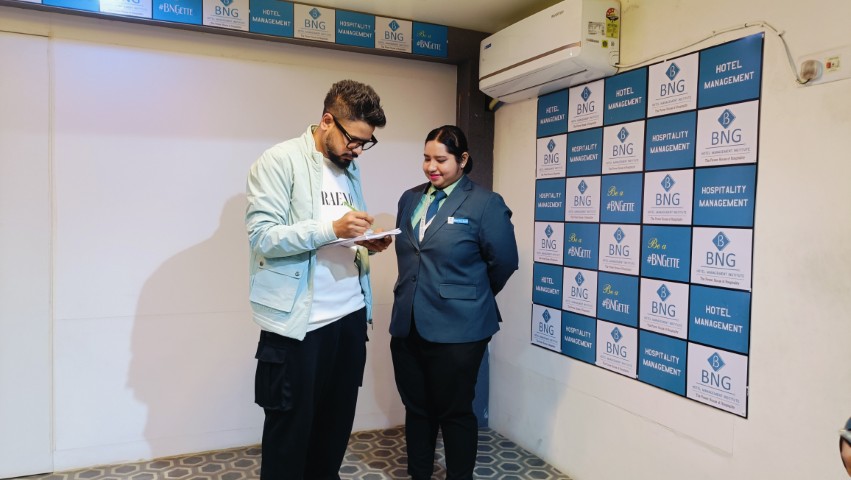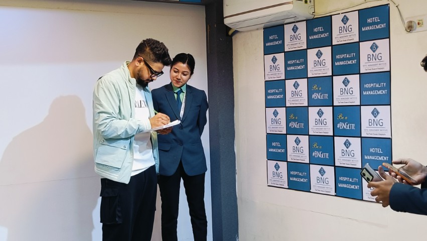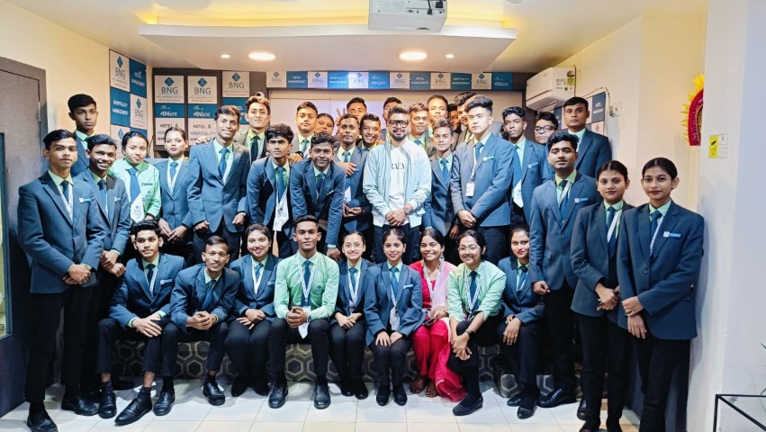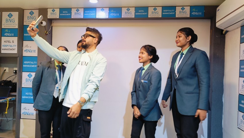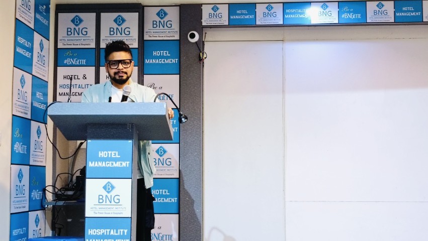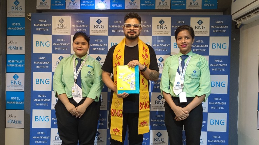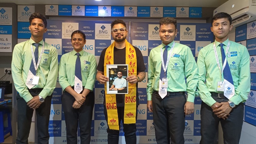 Chef Sougato Ghosh, a well-known celebrity chef from Kolkata, visited the BNG Institute campus and interacted with students. During the visit, he conducted special sessions and classes with students of different batches where he shared insights on culinary practices, kitchen experiences, and professional growth in the hospitality industry.